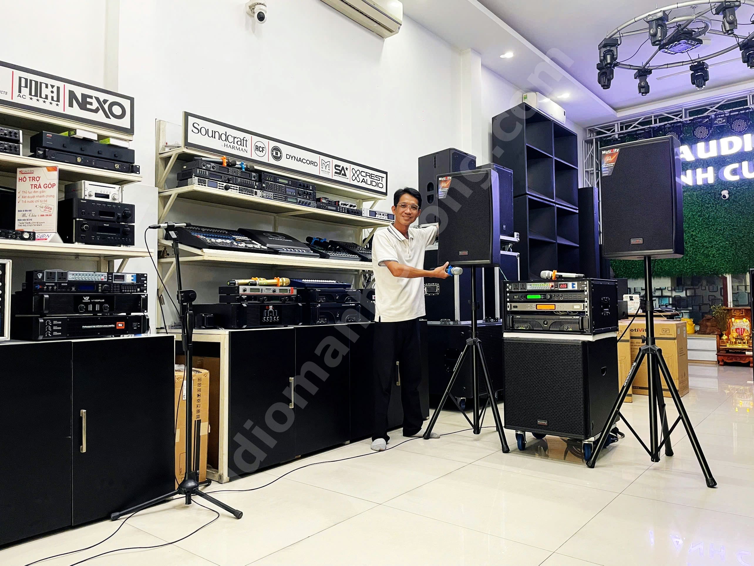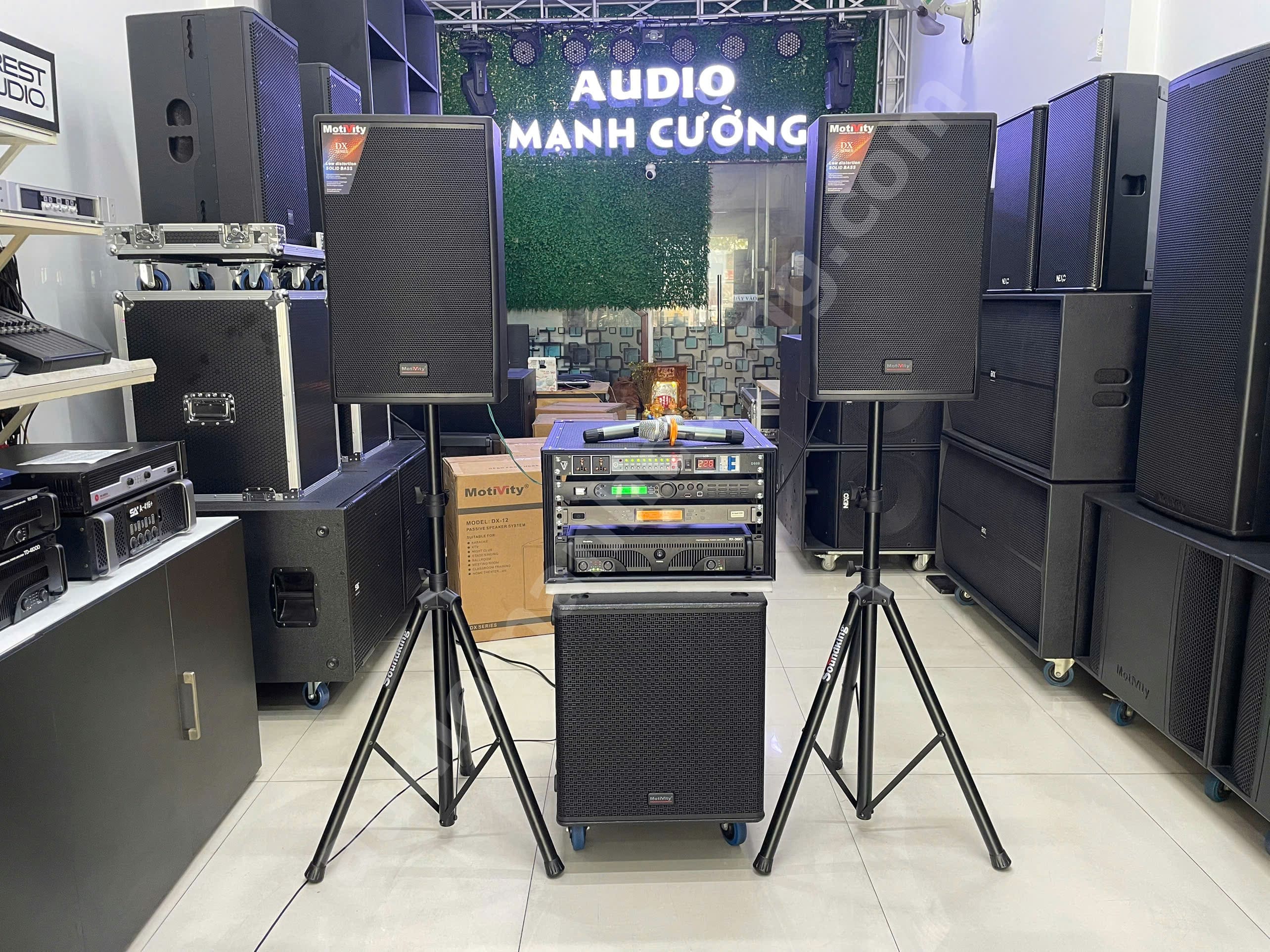 Bộ dàn âm thanh Motivity DX12 là một trong những cấu hình được khách hàng lựa chọn nhiều tại Âm Thanh Mạnh Cường nhờ sự cân bằng giữa chất lượng âm thanh – độ ổn định – chi phí hợp lý. Dàn phù hợp cho karaoke gia đình, phòng giải trí, quán café acoustic và sân khấu mini.